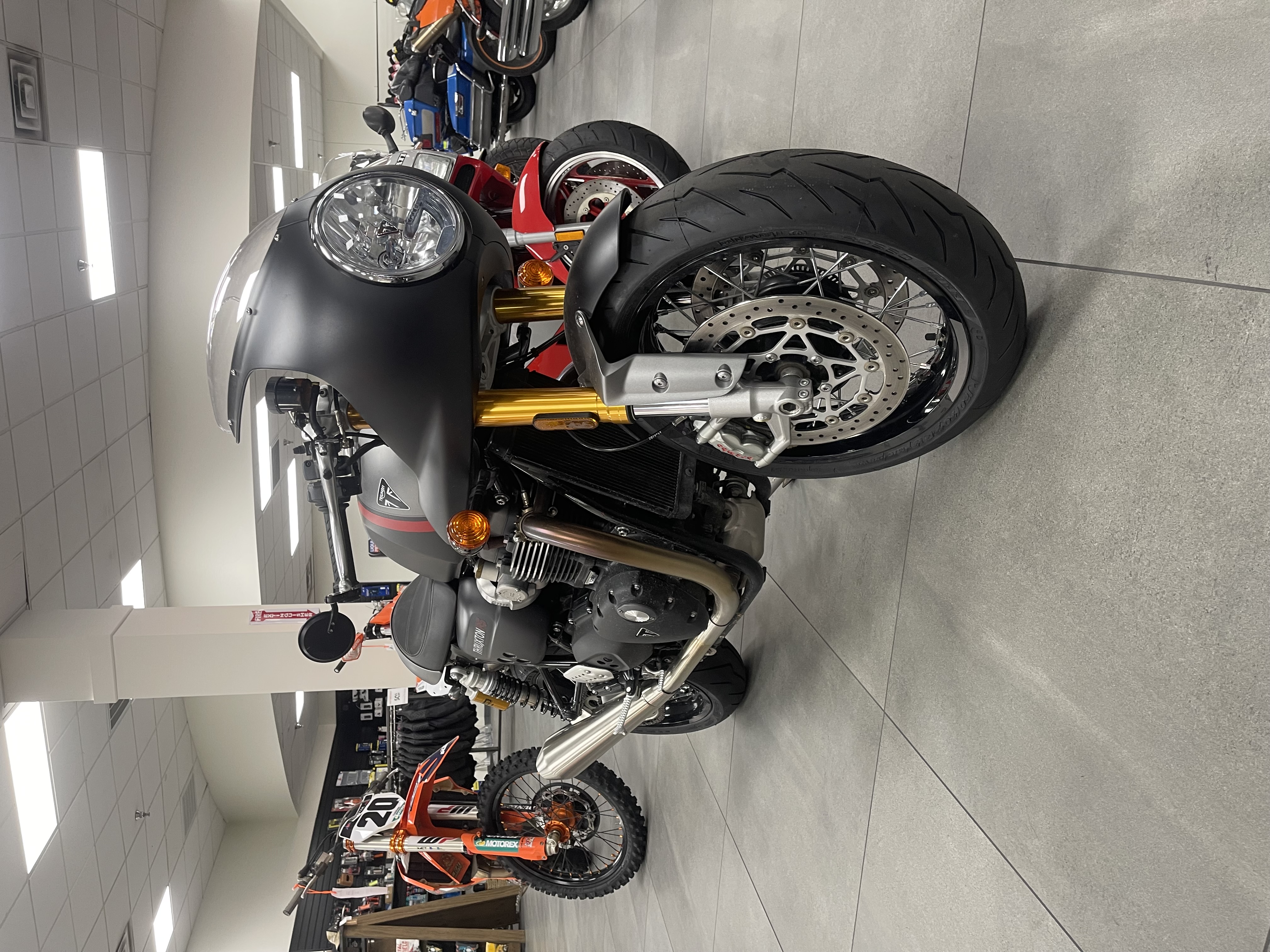 RACE-BRED ADJUSTABLE SHOWA FORKS: Premium high-spec adjustable Showa USD big piston forks are tuned and set up to deliver sharp handling that really delivers on its cafe racer looks, and enhances Triumph’s signature ride dynamics of neutrality, agility and stability.