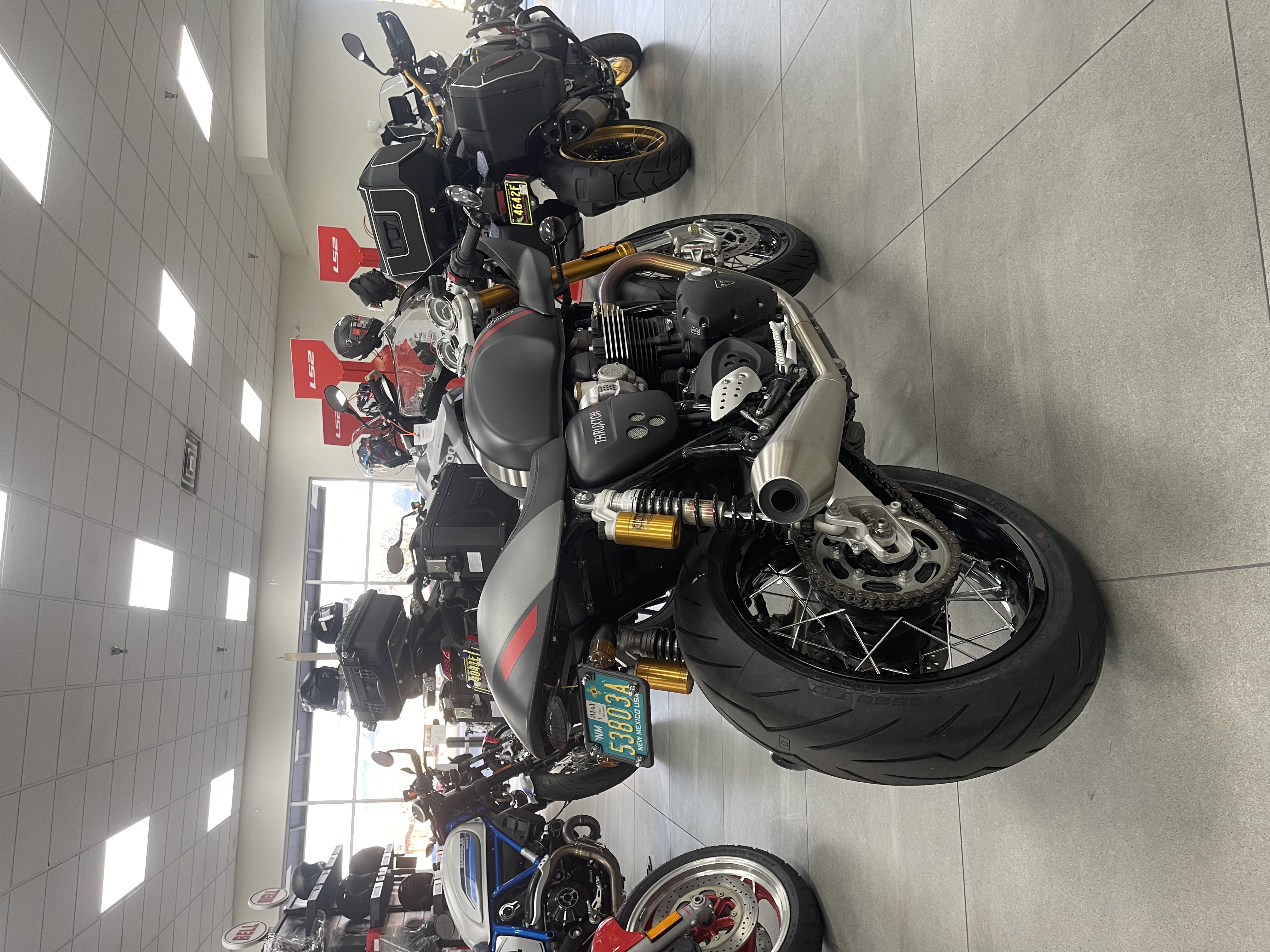 BLACKED-OUT STYLING: Incredible black details and finishes include powder-coated engine covers, cam cover and sprocket cover finishes, Ohlins RSU springs, Thruxton side panel and sprocket cover with integrated heel guard, plus premium black anodized wheels and wheel rims.